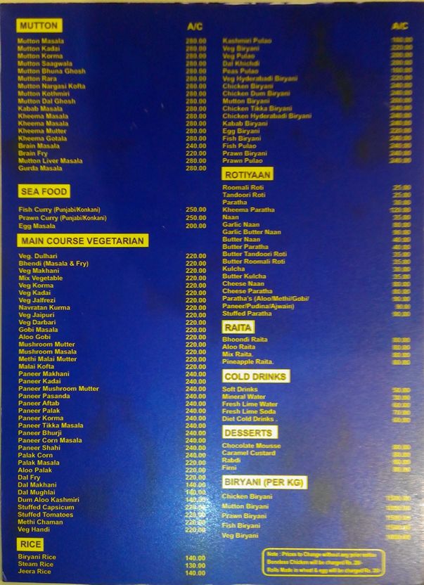 Meal for 2 at Rs 650 in Bandra is economical and I would certainly recommend it for their tandoori items and their rolls.