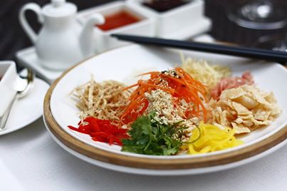 Lantern is split over 3 levels, on the 3rd level is a high energy bar , 2nd level a bit ‘loungey’ for pre-dinner drinks and on the first its cozy eating place with an outdoor seating. And yes this is a fine diner which is open from noon to midnight. We ordered a bottle of bubbly as suggested by the server, a bottle of Il Grigio, thought it to be an aromatic prosecco but was a chardonnay blend from Italy. Soon arrived Sidney Dcunha head chef of the Lantern with a plateful of ingredients for the Yusheng (Prosperity toss) a New Year affair where family members toss-up a salad and the higher they toss the more abundant their year would be, it is raw fish traditionally but we had the vegetable version of the same.