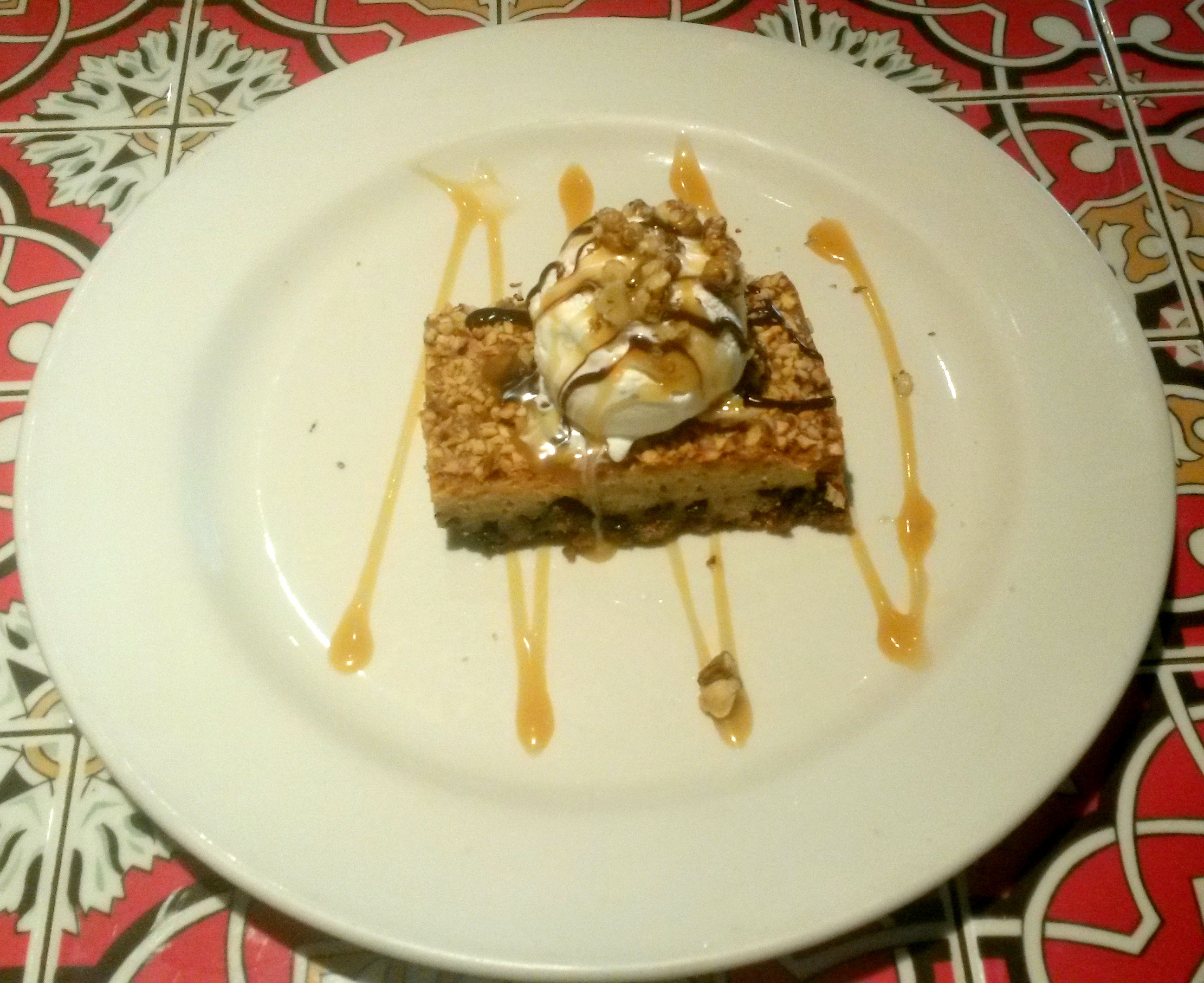 I couldn’t imagine food at least for the next few hours after all that hogging, but there is always place for a dessert, I convince myself almost every time. The home made warm peach pudding was a winner, fresh and opulent, and the portion size was certainly for two and the Chocochip Paradise pie, a chocolate and walnut bar topped with fudge, caramel and vanilla ice-cream, with the sweet overdose it perhaps was meant for four.