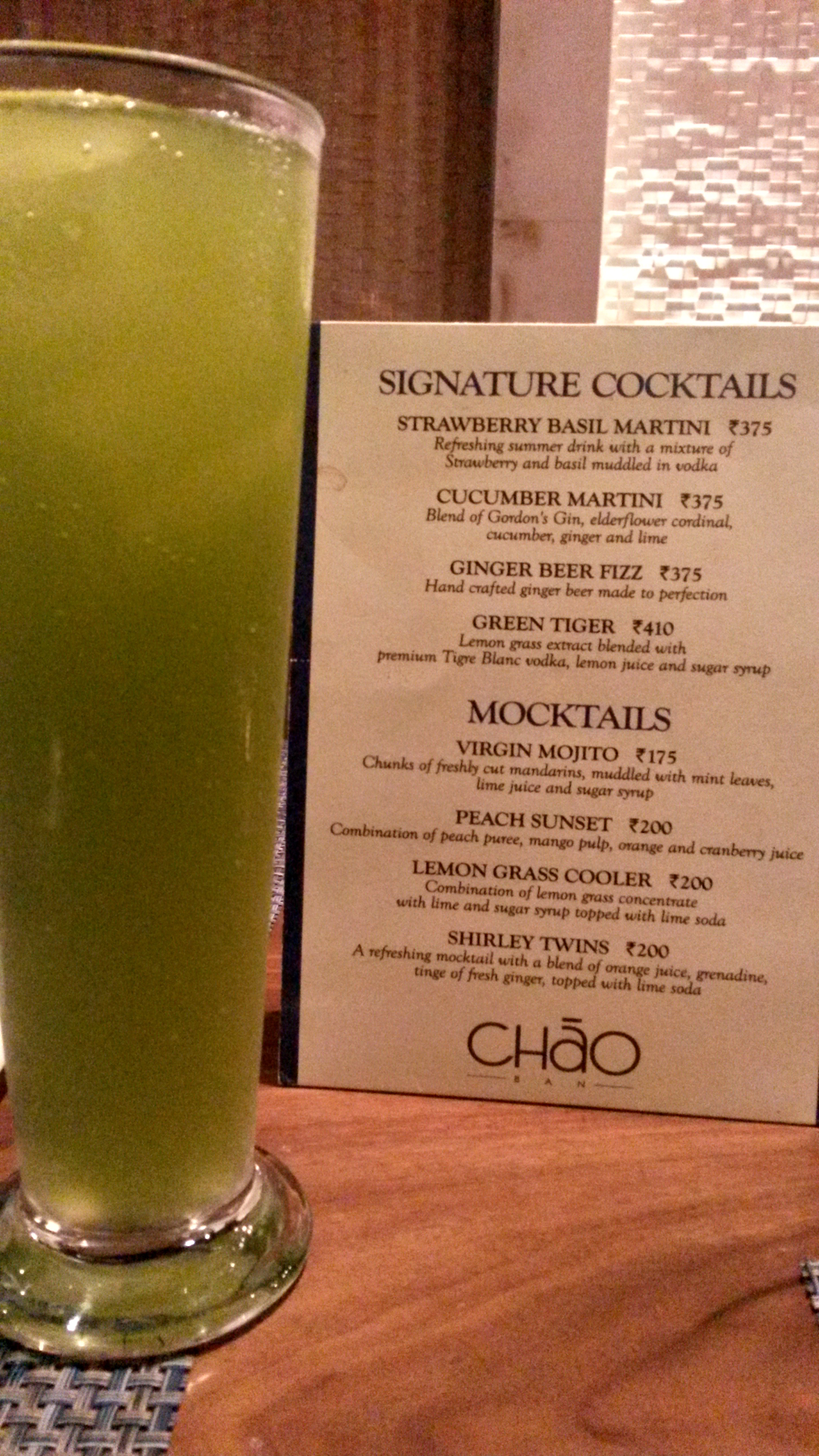 - Rs 800 glass of Selbach Riesling served warm. The wait staff a little clueless on the beverage specially the cocktail menu.