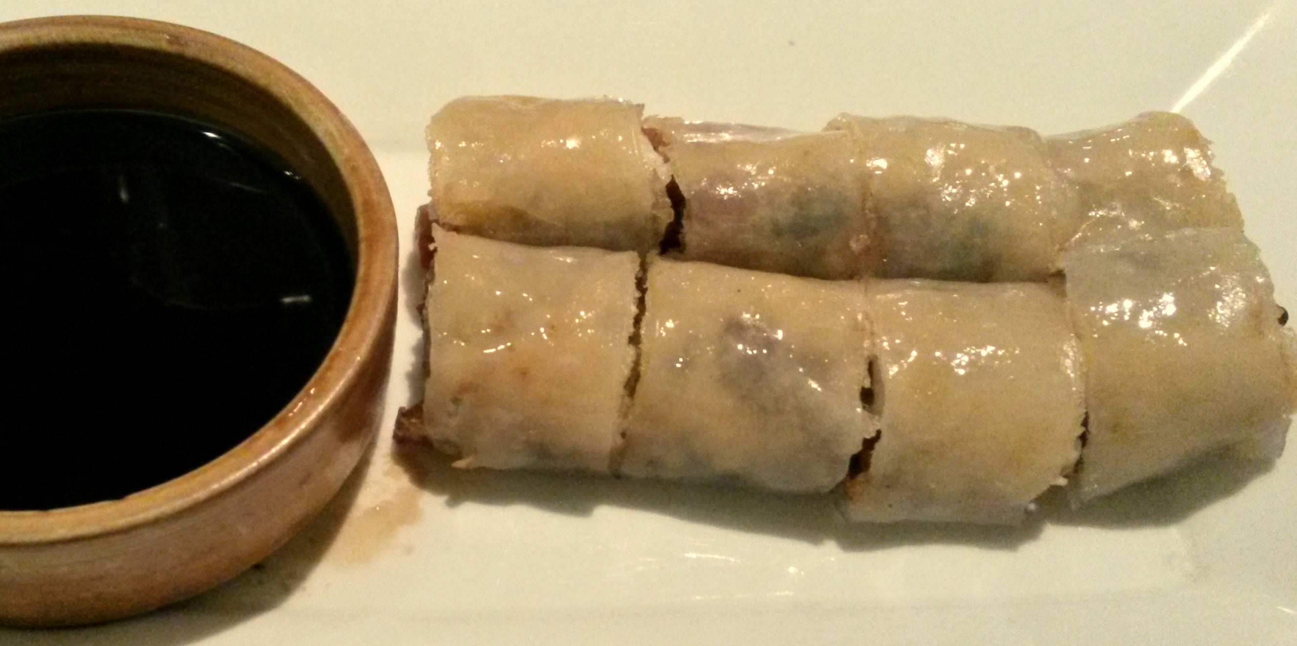 Crunchy veg Cheung Fun (Rs 295): Cheung Fun literally translates and ‘Intestine Noodle’ because of its shape and the flat thick rice noodle it’s rolled up in. It is traditionally steamed and has a velvety texture. This one is a tweak of a spring roll wrapped in a rice noodle and hence ‘crunchy’. But I would prefer the traditional variant and also they could have done better than this lackluster presentation.