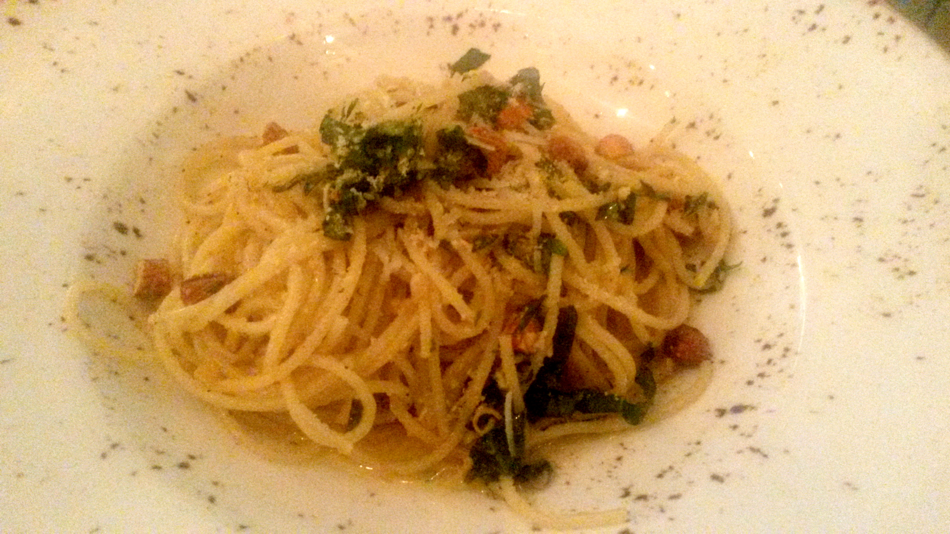 Spaghetti with lemon beurre noisette, parmesan and roasted almonds