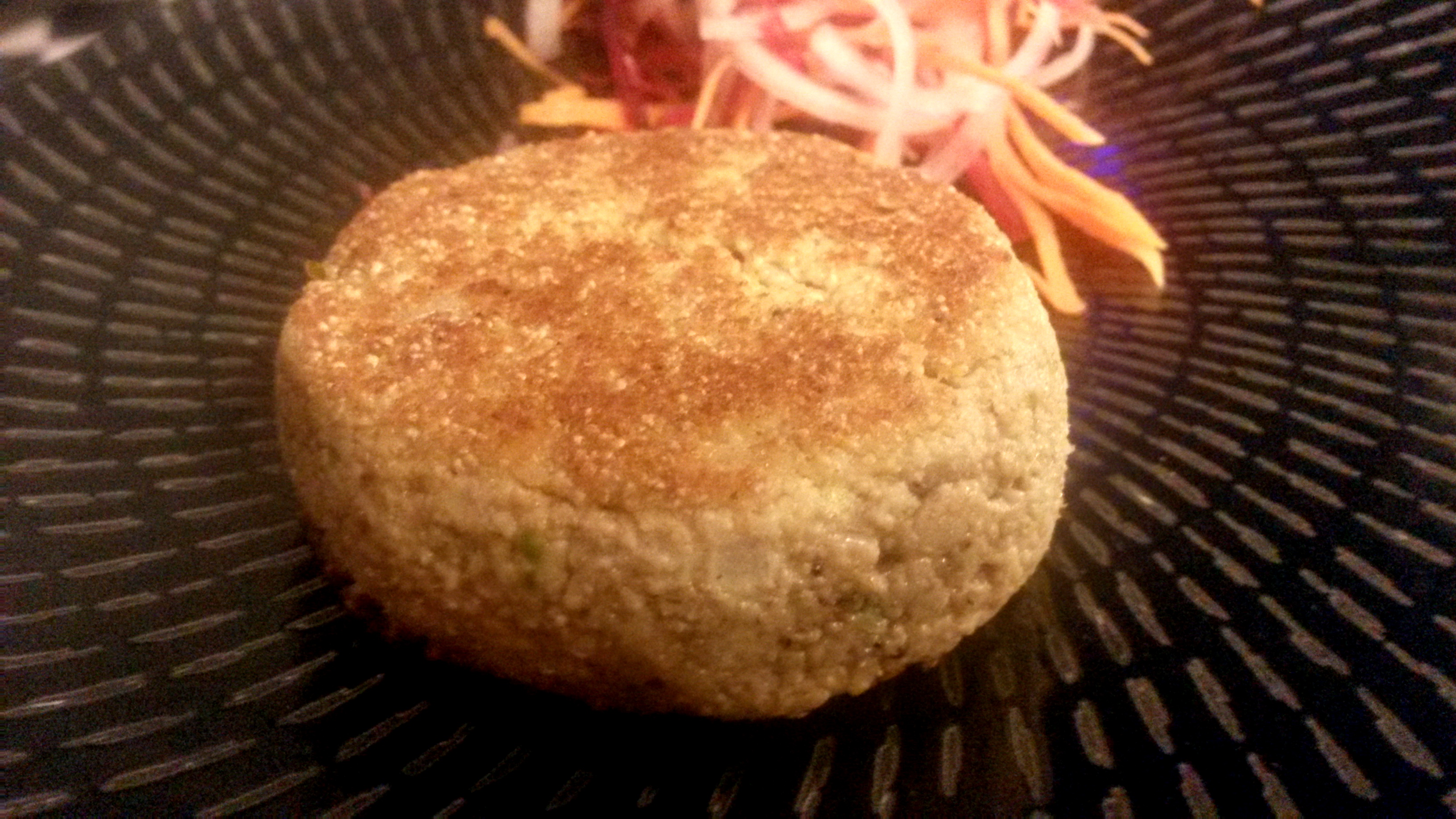 Posto narkel bora: Posto (Poppy seeds), Narkal (Coconut) and Bora (Wada or tikki) is again a popular deep fried dish from West Bengal, this one however is pan-fried, very delicate and crumbly. The highlight of the starters!