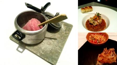 The Tofu Coriander Vadai with peanut gun powder and lime leaf tadka, came with a Thai touch. The philosophy of the kitchen in my opinion was very simple; combine two or three simple flavours in a way that results in something extraordinary and it was very much evident in the beetroot and peanut butter tikki with wasabi chutney, all the flavours showed up in a harmony. The next one was a very smart take on ravioli, the Khandvi ravioli with goat’s cheese and pine nuts was spectacular and so was their popular Gucchi Musallam with walnuts and parmesan papad. The Churan and Anar sorbet on a stick was a much-needed palate cleanser before we went to the main course.